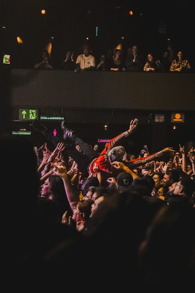 Parece papo de jovem místico, mas a conexão com o público naquele momento estava absurda. Rolaram conexões sem trocar uma palavra sequer. Bastava um olhar durante um pulo, um grito, uma lágrima, um sorriso… e pronto. A gente percebia, por uma janelinha pequena, que mesmo com razões diferentes, nenhuma experiência é de fato individual.